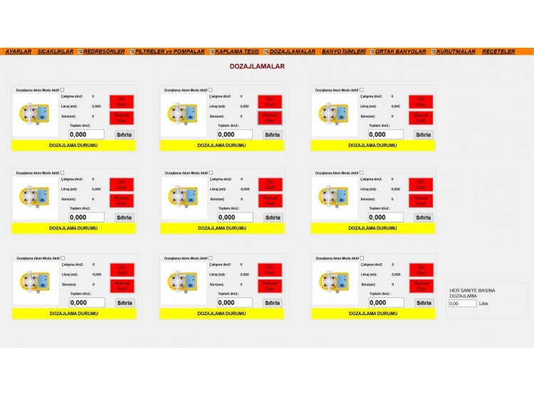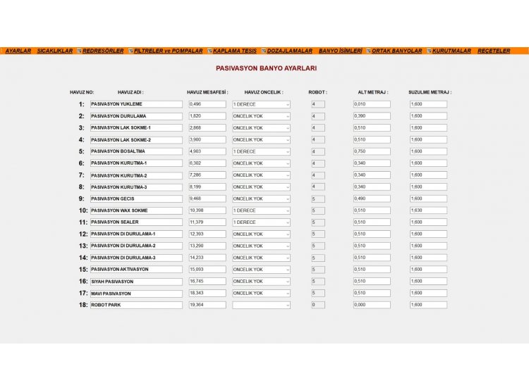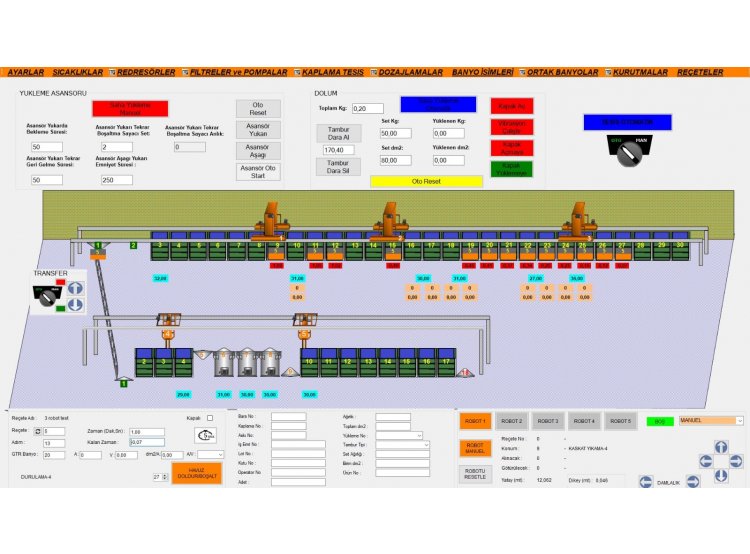 Çalışılan reçetelerden en az 20 adedi, otomatik çalışma için PLC hafızasında tutulur. Askı veya tamburlar, arka arkaya farklı reçeteler ile sorunsuz şekilde çalıştırılabilir.