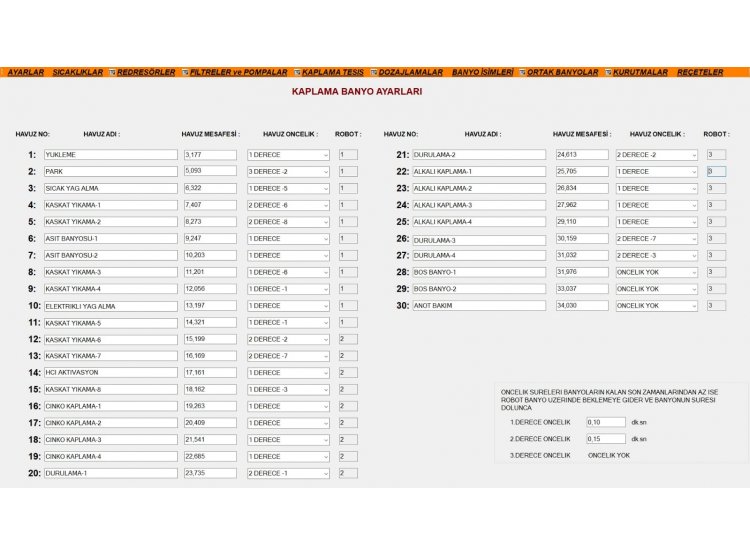 Sistem üzerinden oluşturulan reçeteler, kaplama prosesine ait tüm kritik parametreleri içerir: